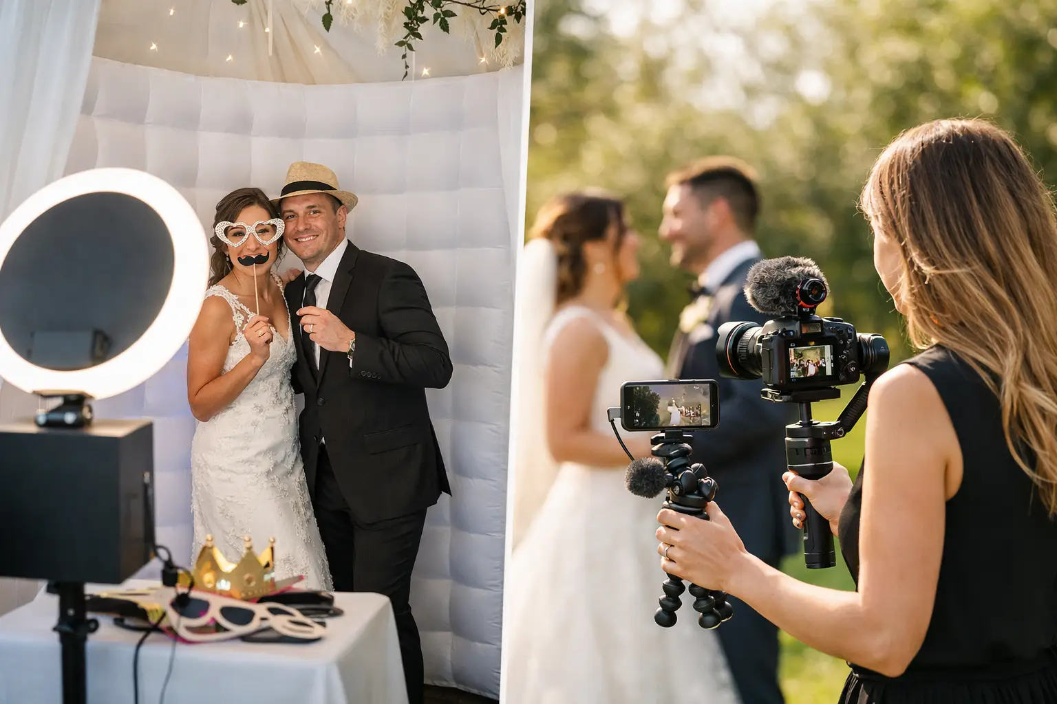 This combination works particularly well at larger celebrations, multi-space venues and evening receptions where you want the atmosphere to build after dinner. A content creator can follow the emotional rhythm of the day, while a booth anchors the party energy once guests are ready to relax and play.