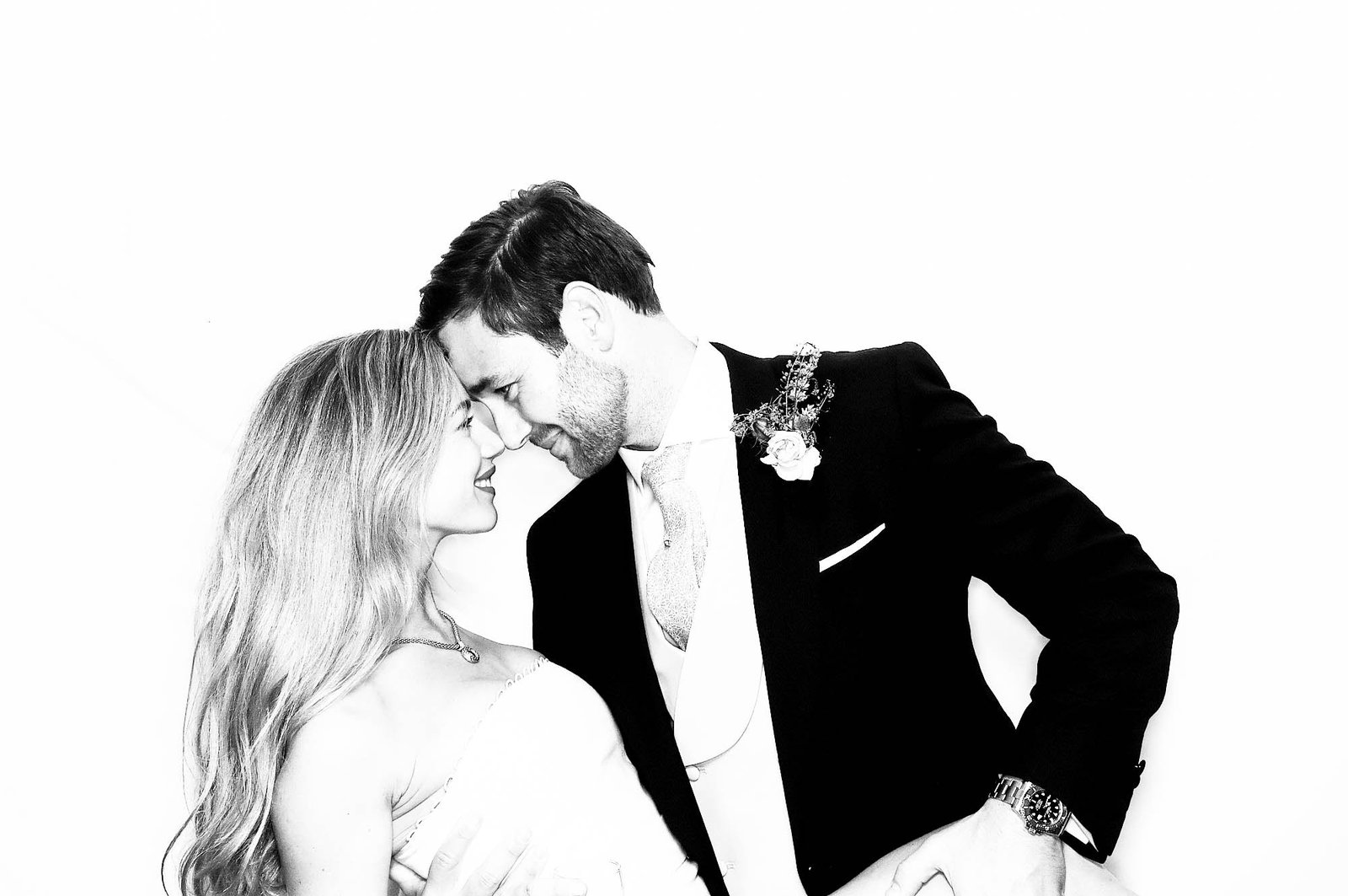 The Glam Kardashian Booth offers a luxurious, high-fashion photo experience. Using professional cameras and studio lighting, it creates striking black-and-white images that add a touch of red-carpet glamour to any wedding or event.